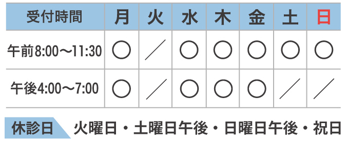 ○ 予約制ではありませんので受付時間内にご来院ください。